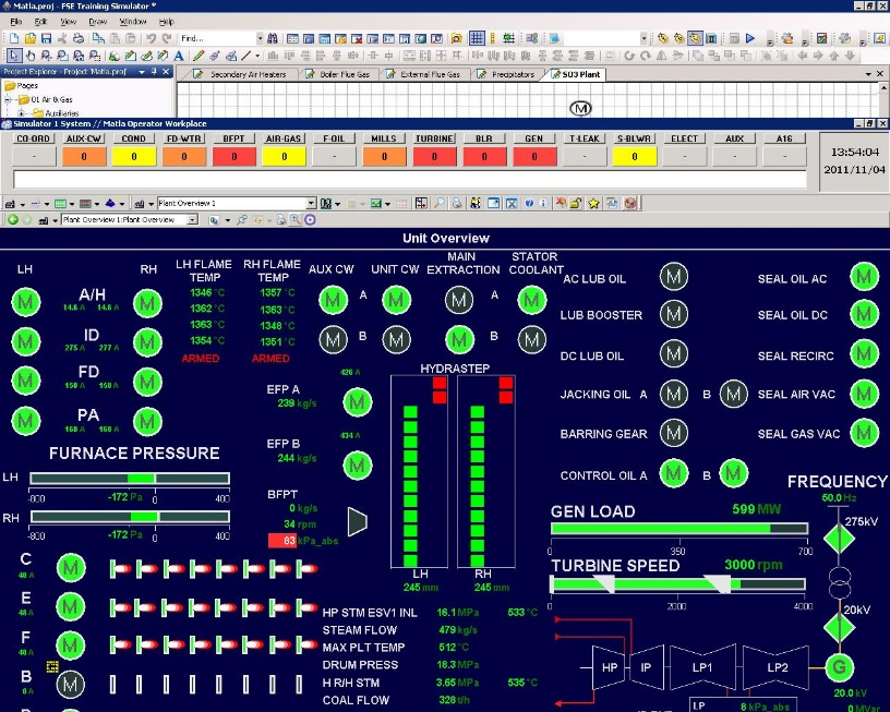 The same HMI as on Actual Plant is supplied by GE, as well as the Engineering Station, which can be used to monitor controls running in the GE supplied DCS Emulator Application.