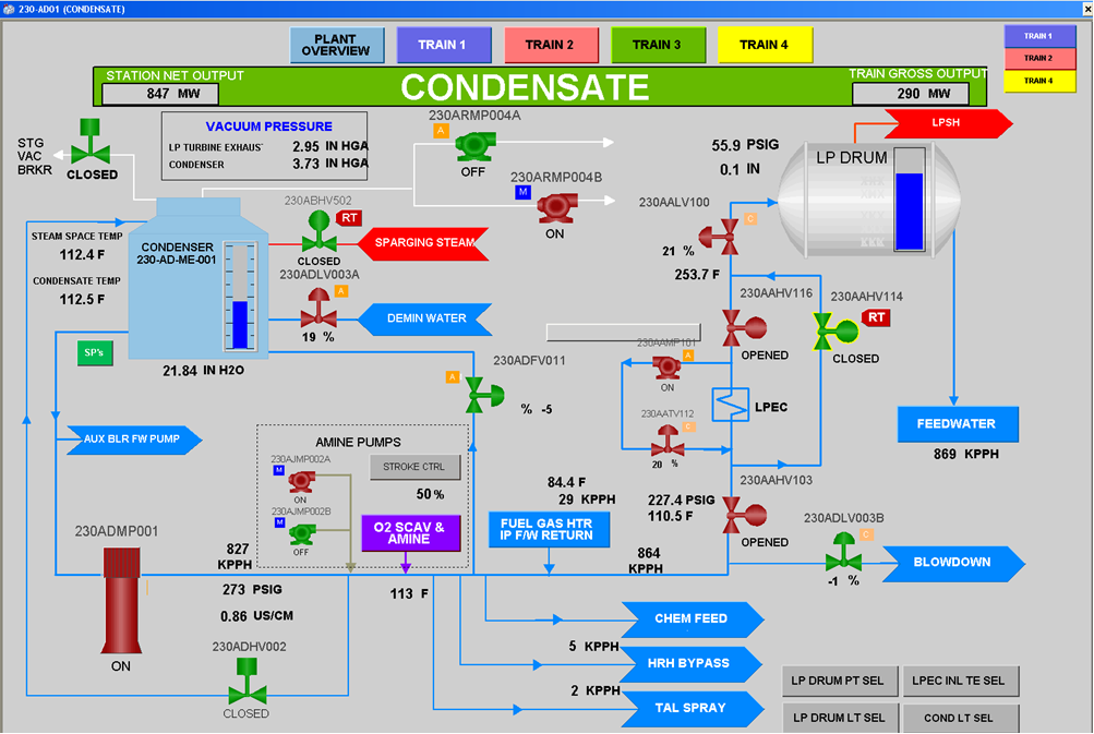The same HMI as on Actual Plant is supplied by Emerson, as well as the Engineering Station, which can be used to monitor controls running in the Emerson supplied SimulatePro DCS Emulator Application.